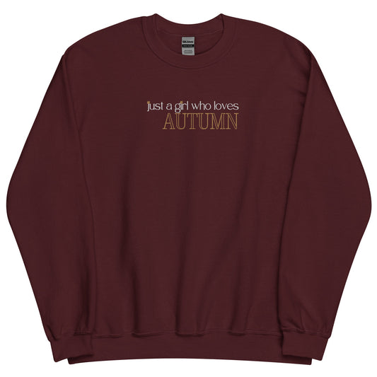 Just a Girl Who Loves Autumn Embroidered Sweatshirt (Dark Colors)