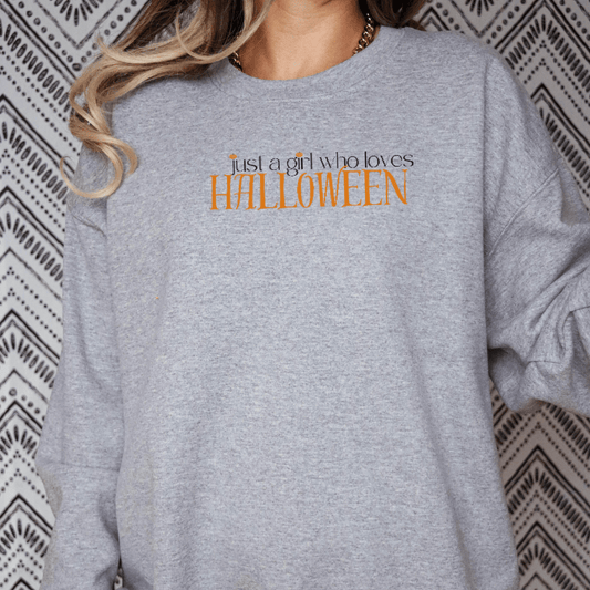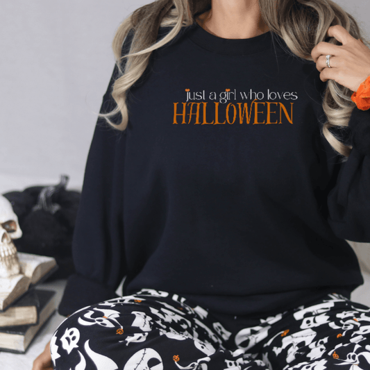 Just a Girl Who Loves Halloween Embroidered Sweatshirt