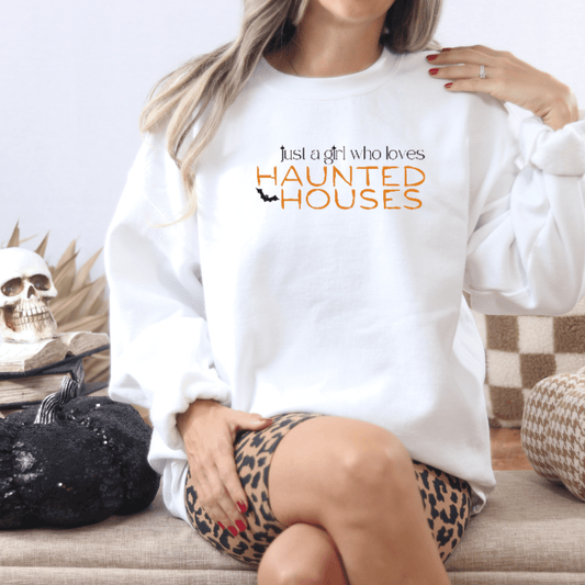 Just a Girl Who Loves Haunted Houses Embroidered Sweatshirt